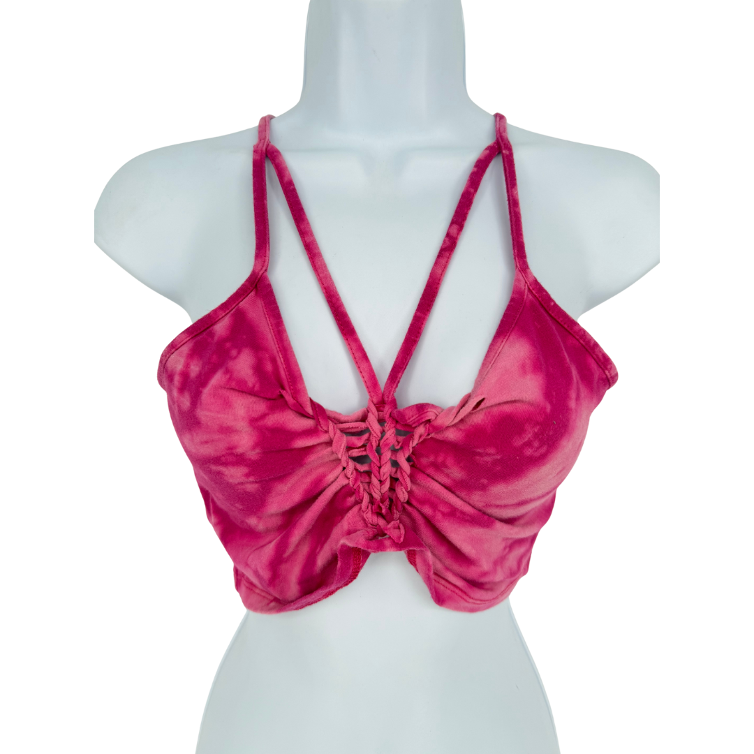 Burgundy bleach dyed weaved crop top.
